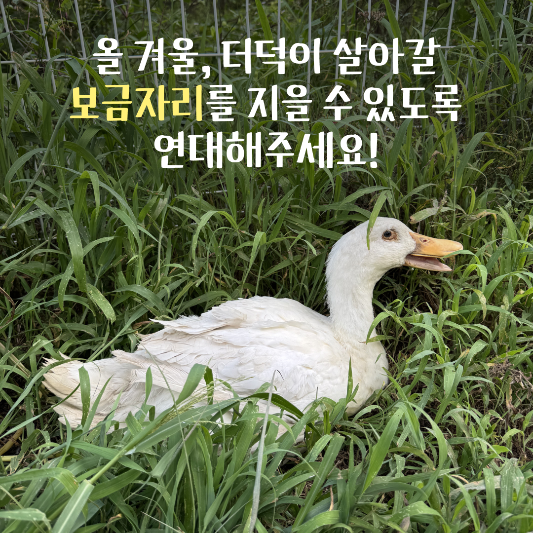 현재 새벽이생추어리에서는 더덕의 보금자리 프로젝트를 활발히 진행하고 있어요. 새벽과 잔디, 두 명의 돼지를 위해 설계된 공간에 새로운 거주동물인 오리가 살아가려면 어떤 점들을 고려해야 할까요?