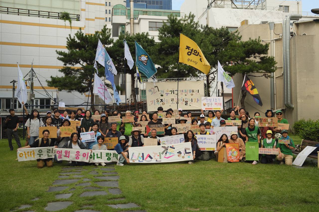올해에는 광주에서 열린 기후정의행진에도 새벽이생추어리가 참여했답니다. 현재 새벽이생추어리가 위치한 전라도에서도 더 많은 연대자분을 향해 가닿고자 노력하겠습니다.