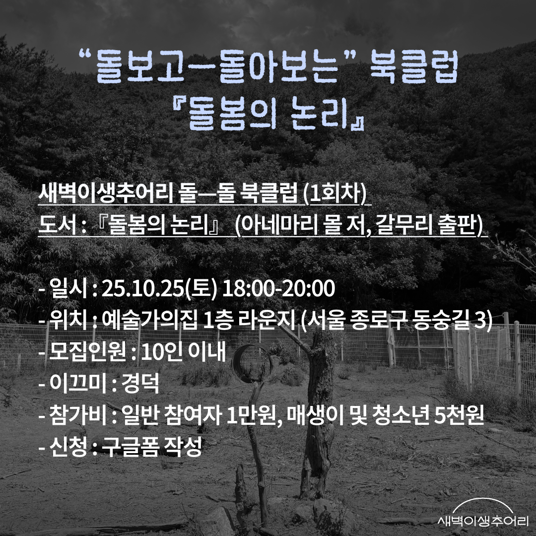 4. 새벽이생추어리 "돌—돌 북클럽" 모집 📖